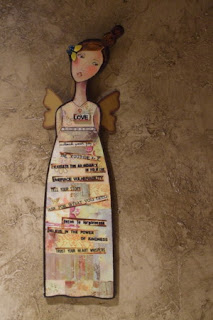 These two wall hangings were gifts to me-the framed piece was made for me by Traci and i love it-it now hangs in my bathroom where i can see it every day. The kelly rae piece was from Margo-it too hangs in my bathroom-the colors went so well in there it had to stay!